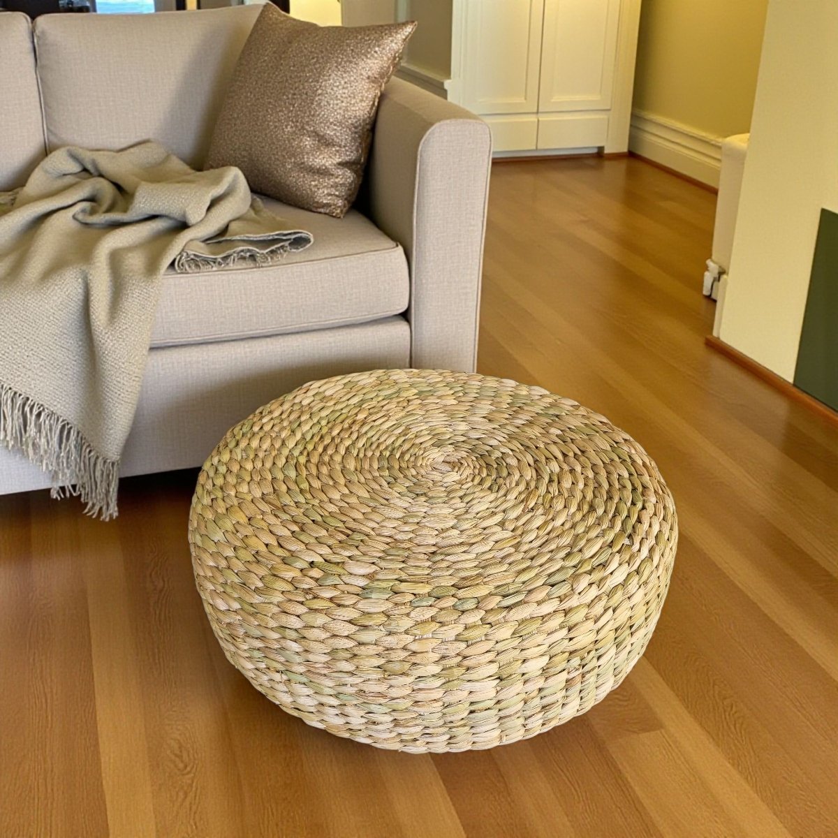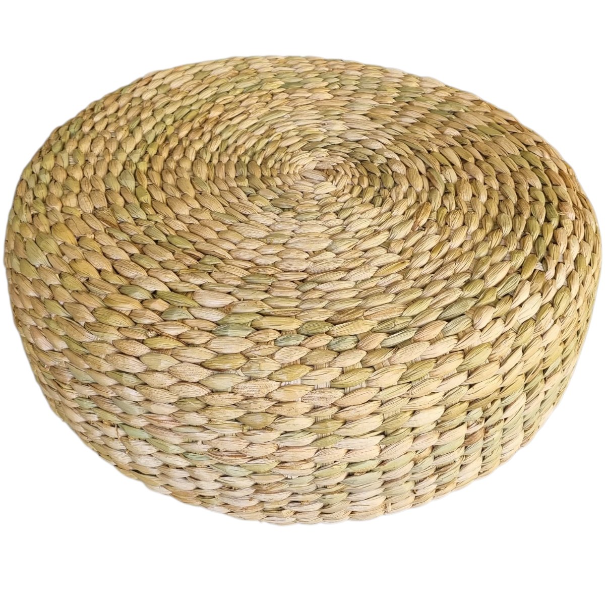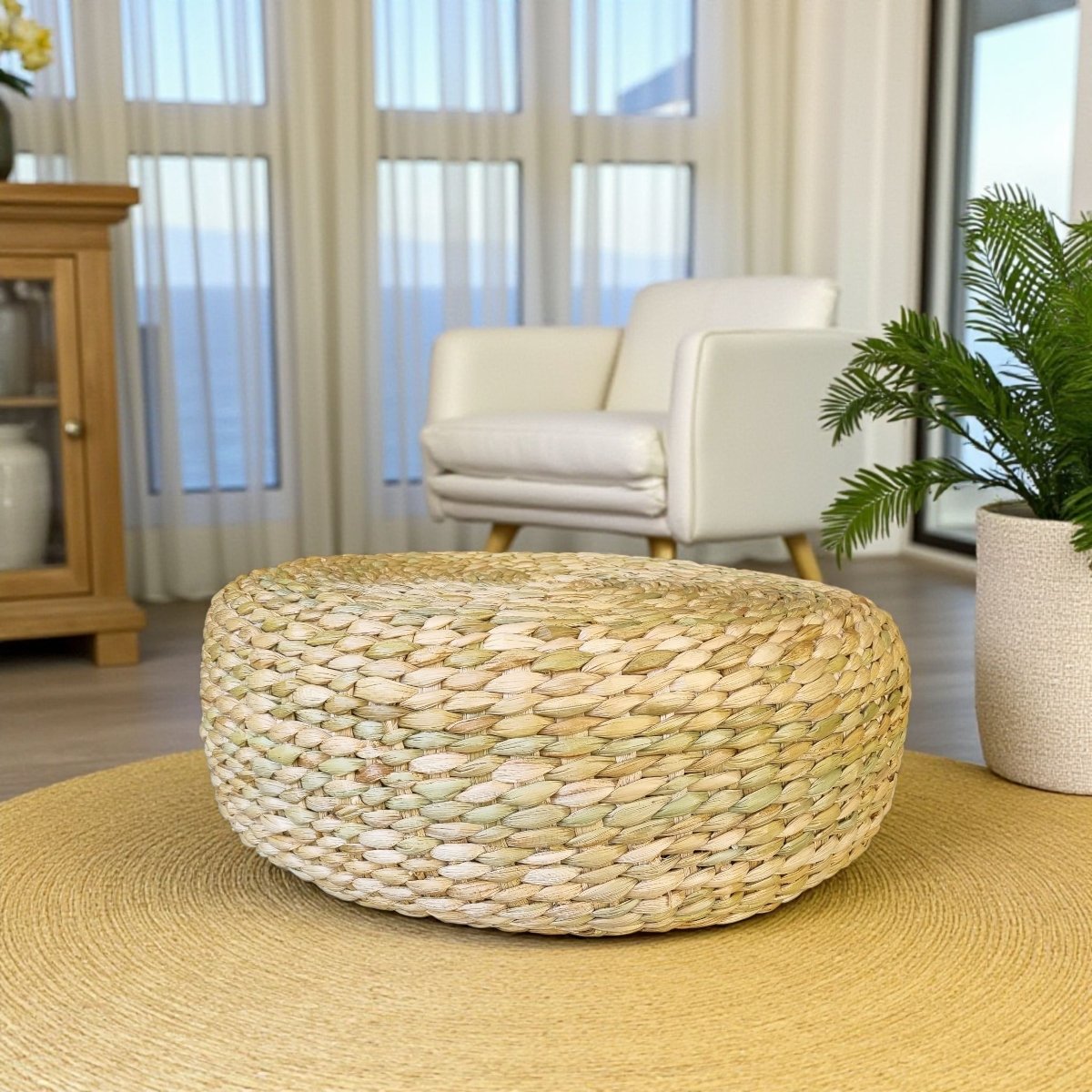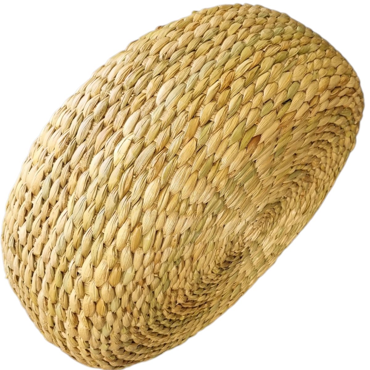Descubra a perfeição dos nossos pufes de pneu revestido com palha de taboa, habilmente trançados com palha natural pela nossa experiente artesã Silvana.